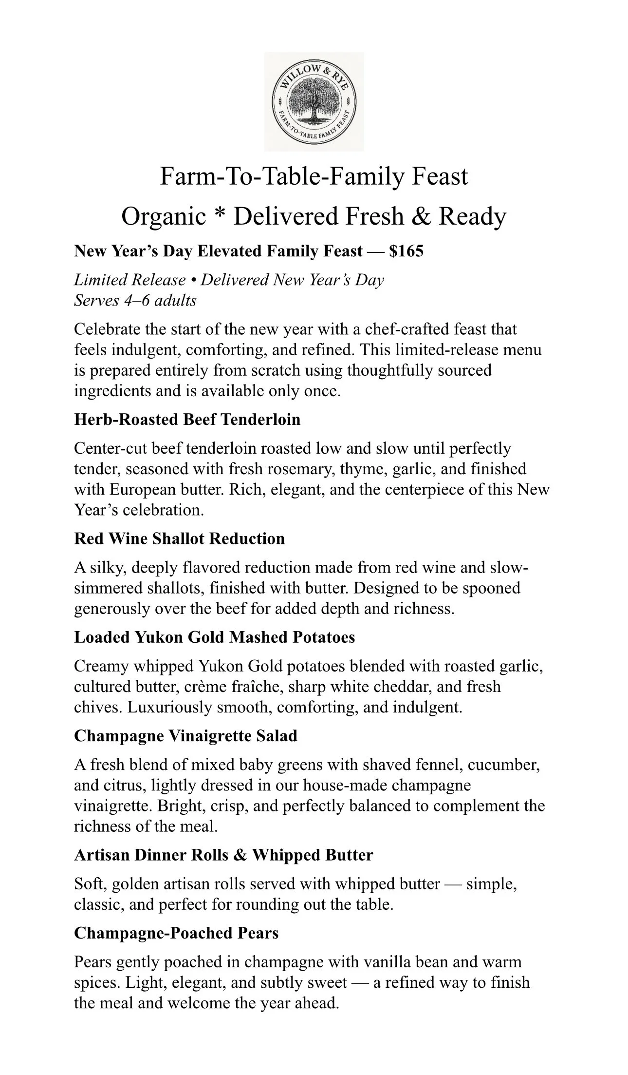 This season also includes our New Year’s Day Limited Edition Feast — a one-day-only, elevated menu crafted exclusively for New Year’s Day celebrations. Thoughtful, indulgent, and intentionally limited, this is a release we offer once a year and it sells out every time.